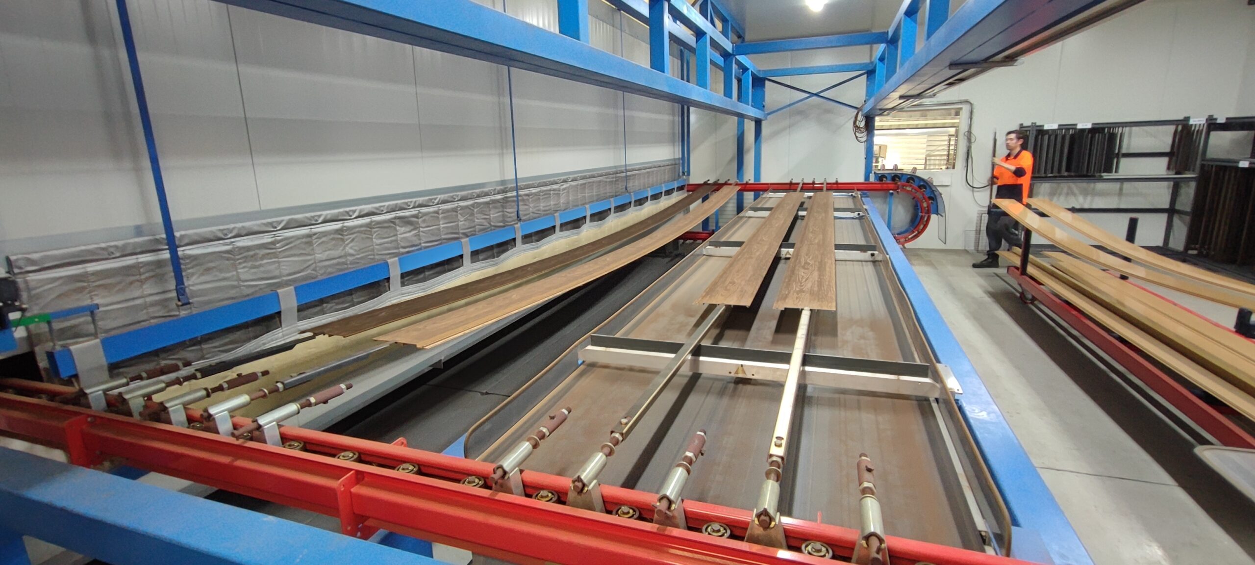 Sistema automatico con forno in linea per la verniciatura Effetto Legno con sistema Polvere su Polvere